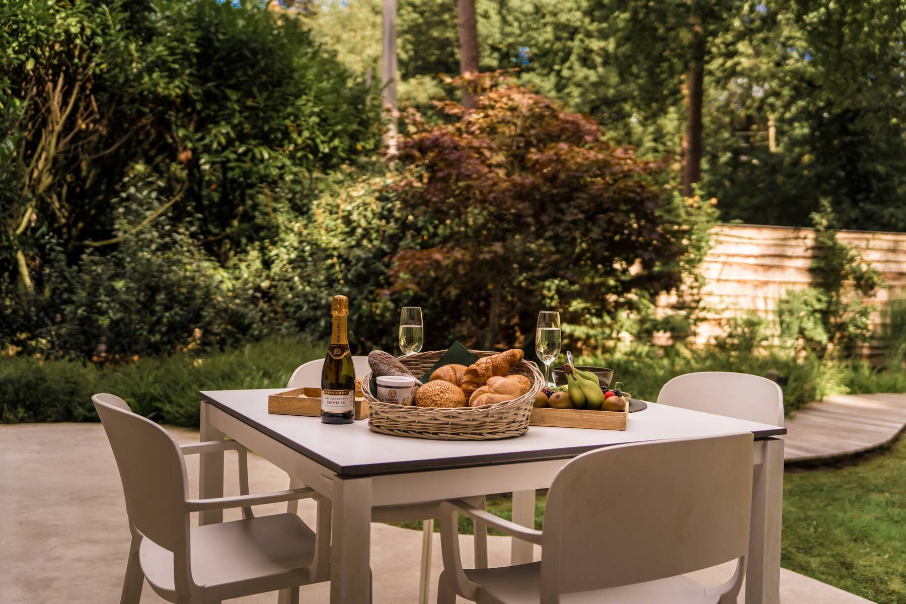 Naast het betrekken van de natuur trachten we dat ook te doen met lokale ondernemers. Zo bieden we heerlijk geurende zepen en champoo’s aan uit het nabure klooster in Brecht, kan je uiteraard de Westmalse trappisten terugvinden in onze mini-bar en eet je uit het mooiste handgemaakte servies van Jardins du Sable (olv Monique Van Tendeloo), een lokaal keramiek atelier.